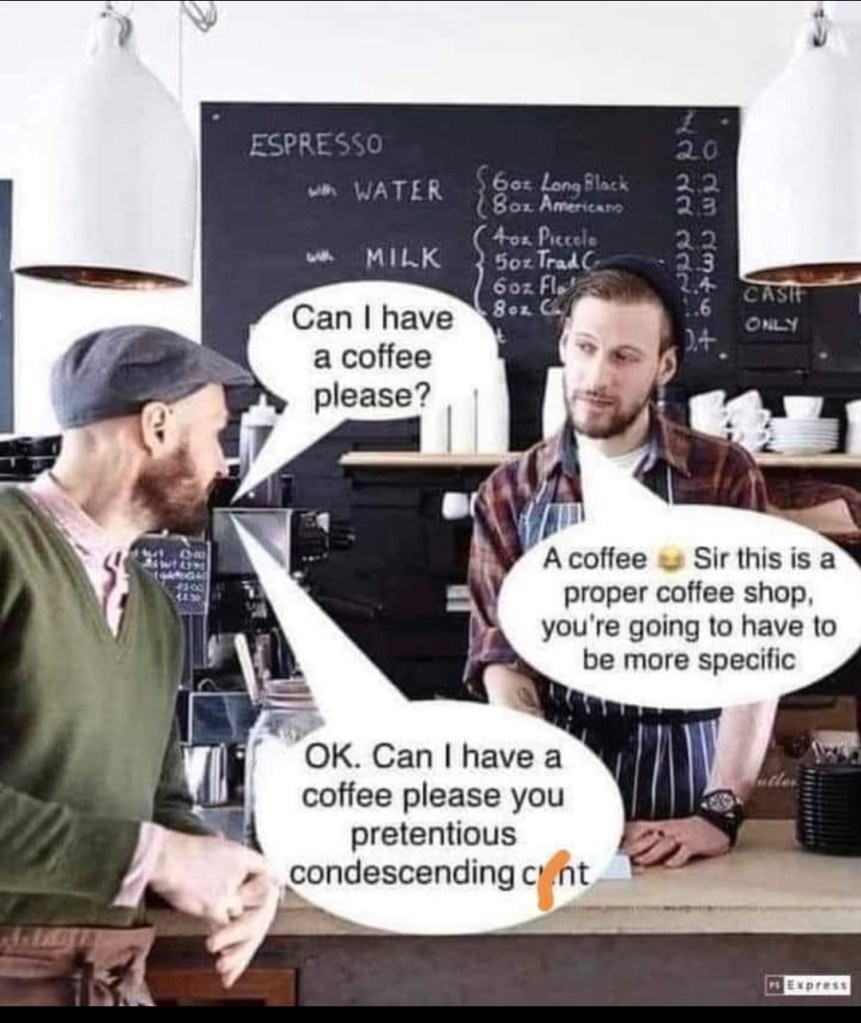 - The incessant questions. Although not as bad as Subway, sometimes you just want ‘a coffee’.